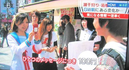 この「応援メッセージ」はすぐにTwitter(#AKIBA_yell)で紹介され、メッセージごとに100円の義援金が被災地に寄付されます。